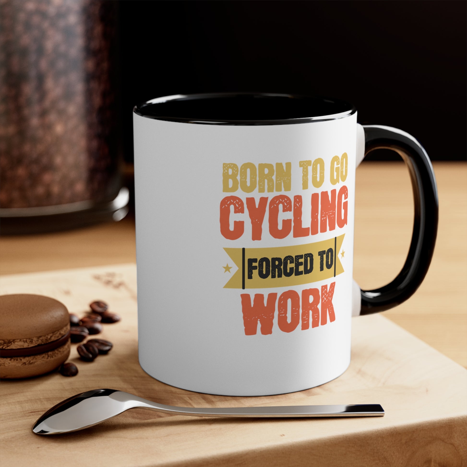 Date un capricho o alegra el día especial de alguien con nuestra taza de dos tonos Born to go Cycling, Forced to Work . Con un cómodo asa en forma de C acentuada y un interior contrastante que añade carácter, esta taza de 11 oz ofrece un toque de color a tu rutina diaria. Es más que una simple taza: es una declaración de personalidad en tus manos.