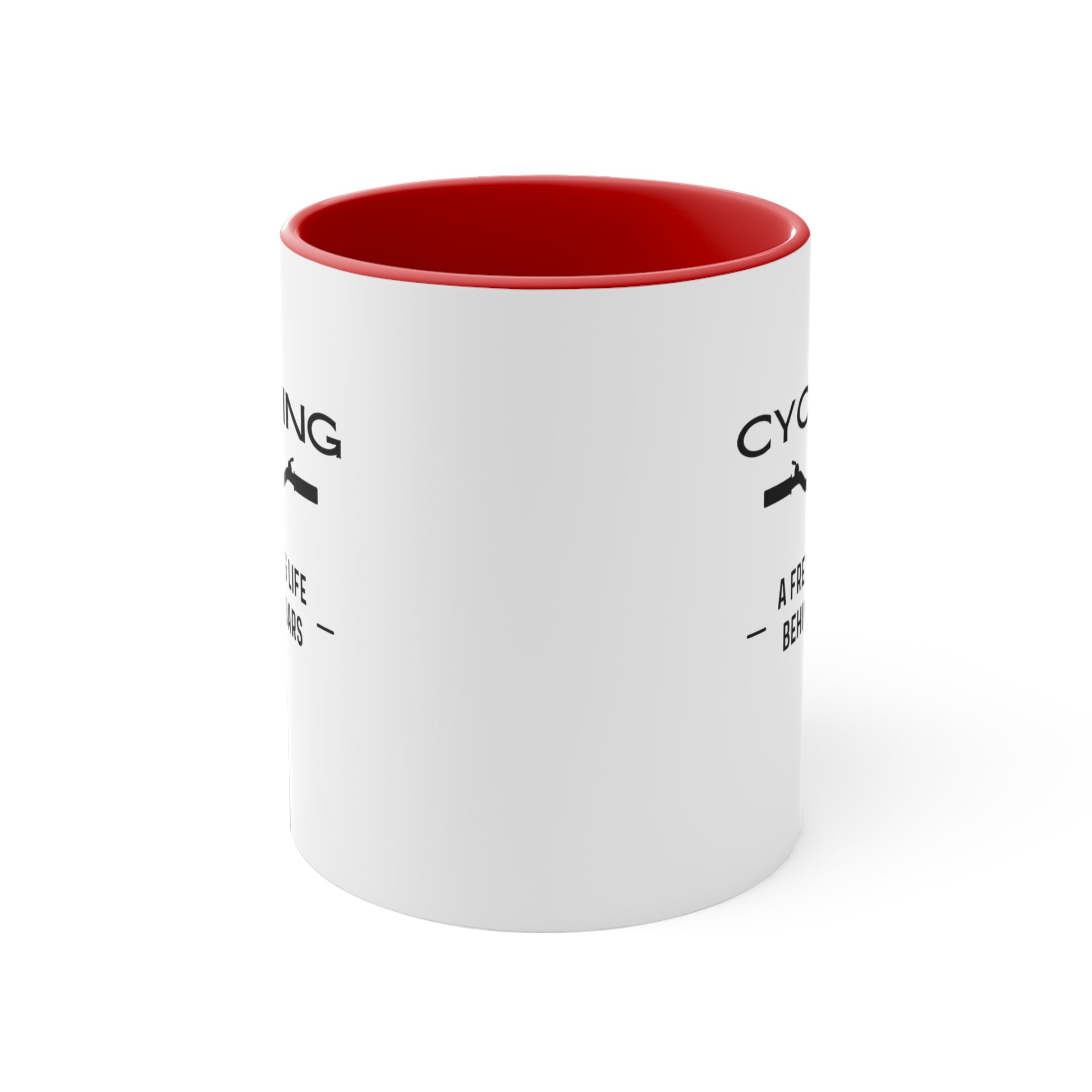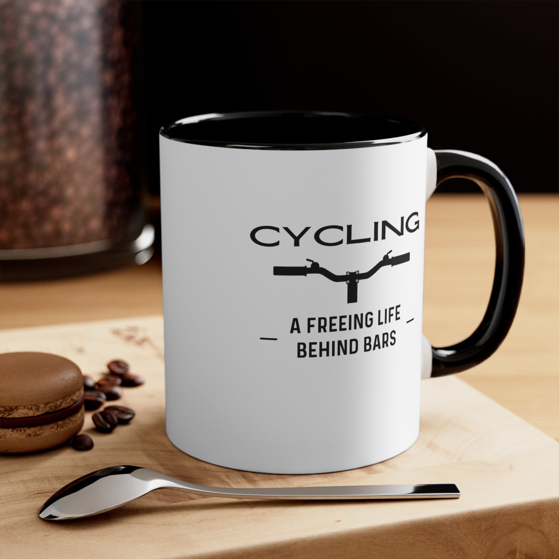 Date un capricho o alegra el día especial de alguien con nuestra taza de dos tonos Ciclismo, una vida liberadora tras las rejas . Con un cómodo asa en forma de C acentuada y un interior contrastante que añade carácter, esta taza de 11 oz ofrece un toque de color a tu rutina diaria. Es más que una simple taza: es una declaración de personalidad en tus manos.