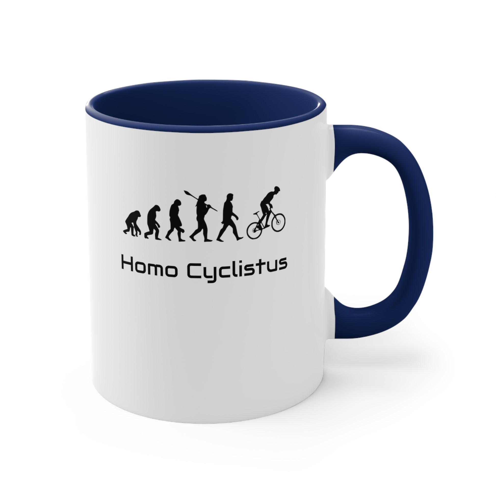 Date un capricho o alegra el día especial de alguien con nuestra taza de bicicleta Homo Cyclistus de dos tonos. Con un cómodo asa en forma de C acentuada y un interior contrastante que añade carácter, esta taza de 11 oz ofrece un toque de color a tu rutina diaria. Es más que una simple taza: es una declaración de personalidad en tus manos.