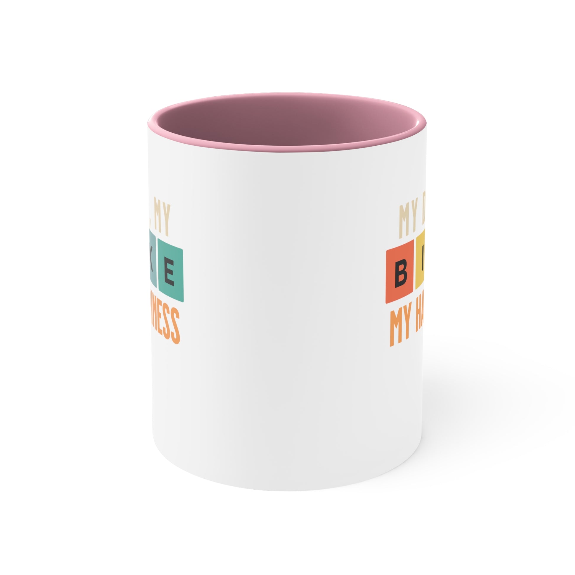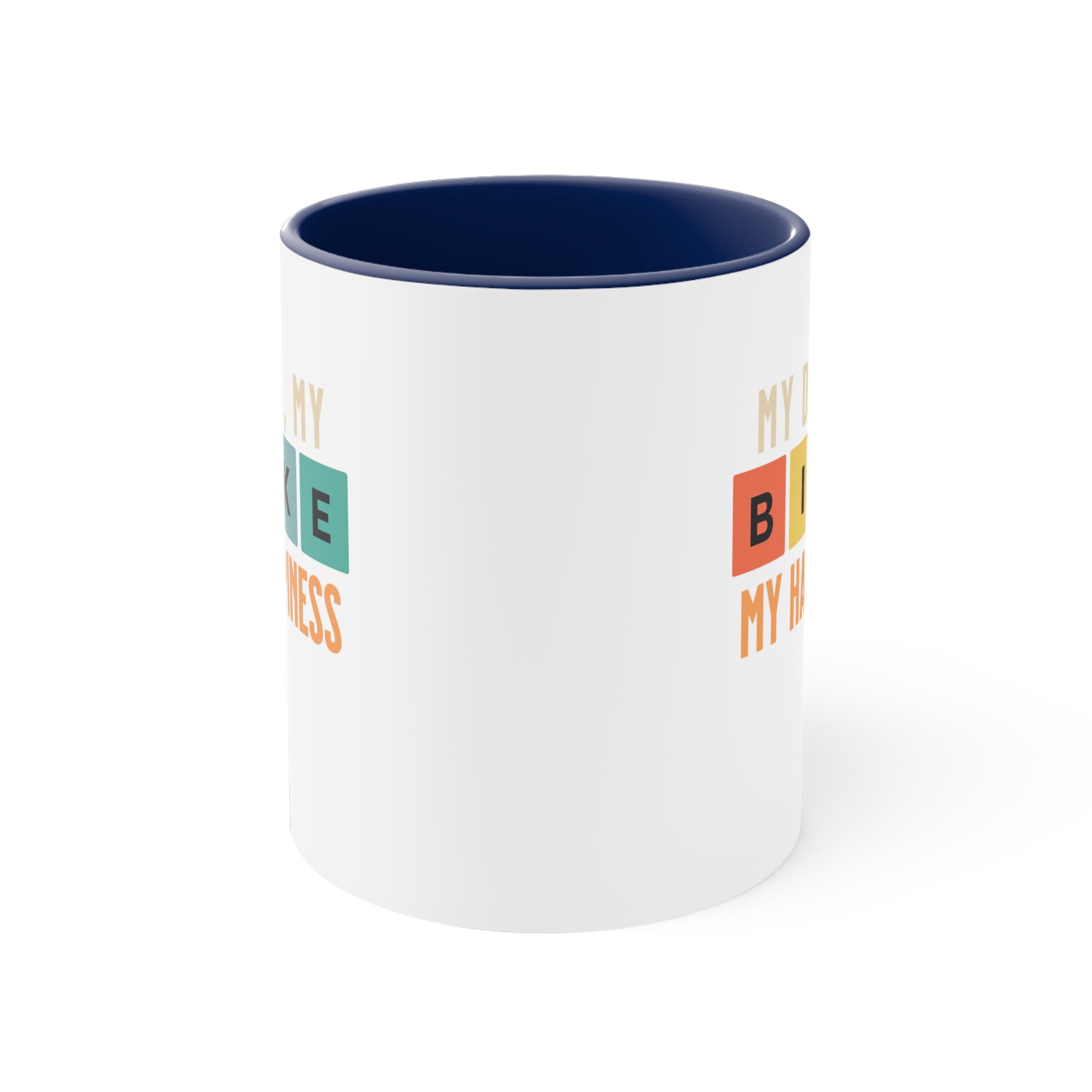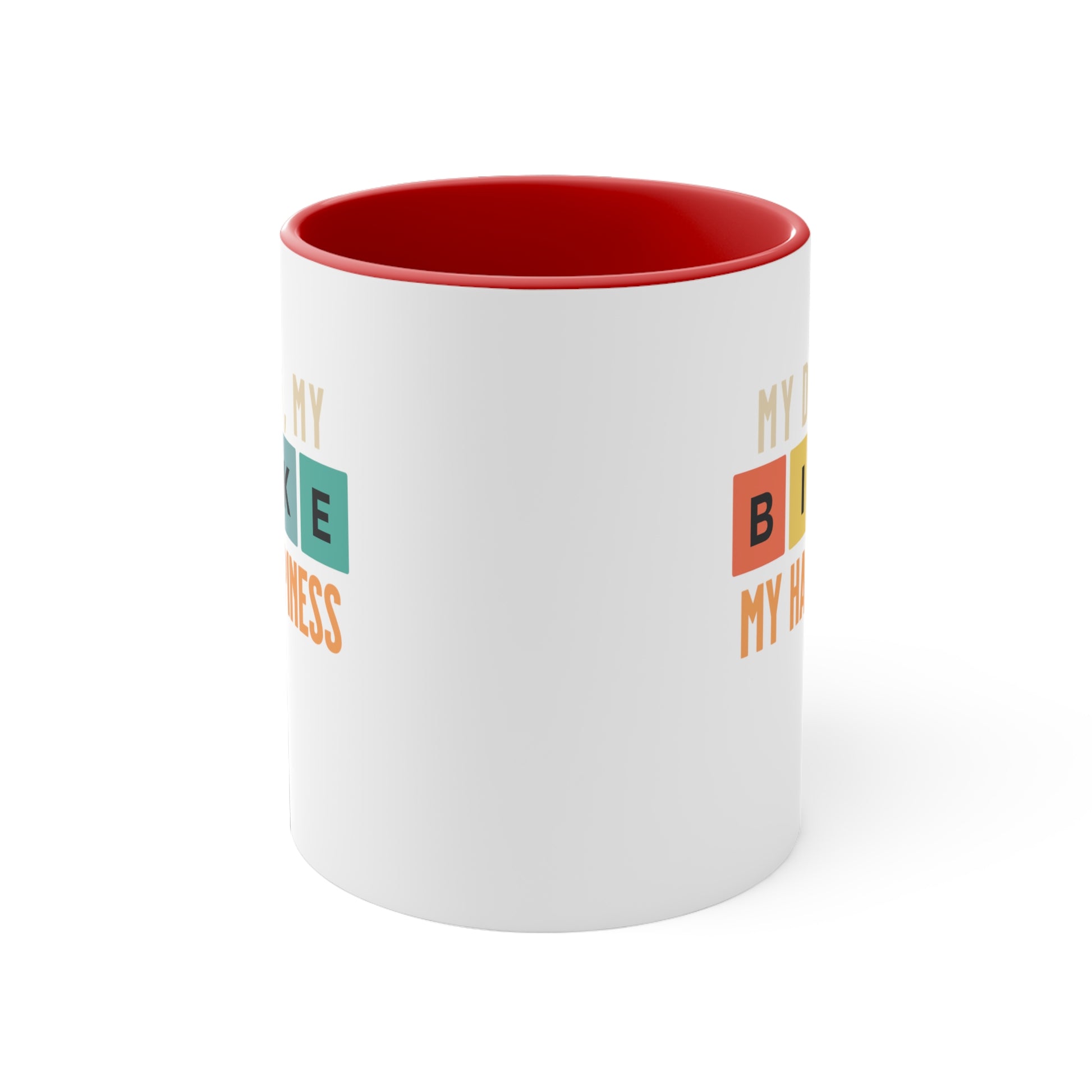 Date un capricho o alegra el día especial de alguien con nuestra taza bicolor Mi perro, mi bicicleta, mi felicidad - Bicicleta . Con un cómodo asa en forma de C acentuada y un interior contrastante que añade carácter, esta taza de 11 oz ofrece un toque de color a tu rutina diaria. Es más que una simple taza: es una declaración de personalidad en tus manos.