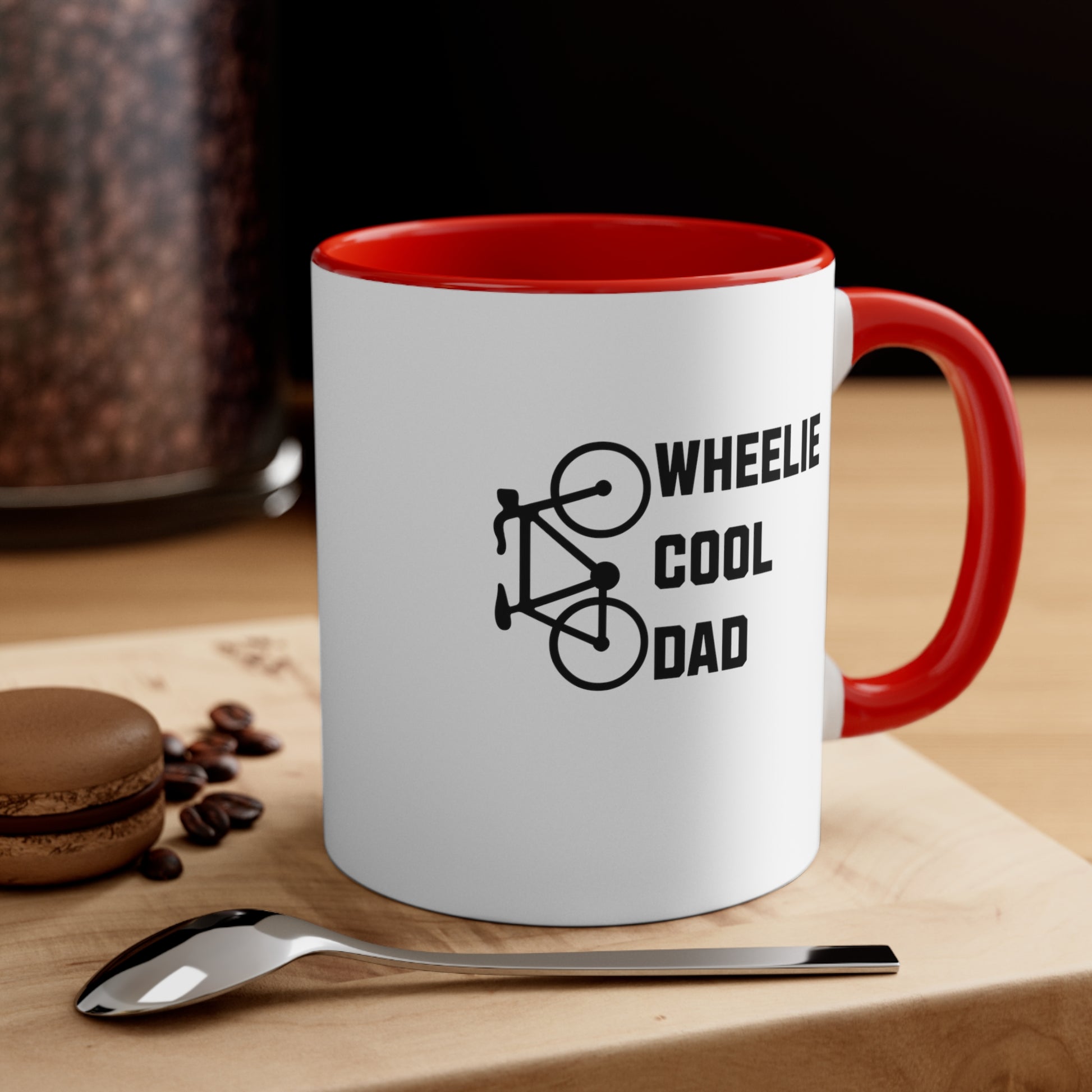 Date un capricho o alegra el día especial de alguien con nuestra taza Wheelie Cool Dad - Bicycle de dos tonos. Con un cómodo asa en forma de C acentuada y un interior contrastante que añade carácter, esta taza de 11 oz ofrece un toque de color a tu rutina diaria. Es más que una simple taza: es una declaración de personalidad en tus manos.