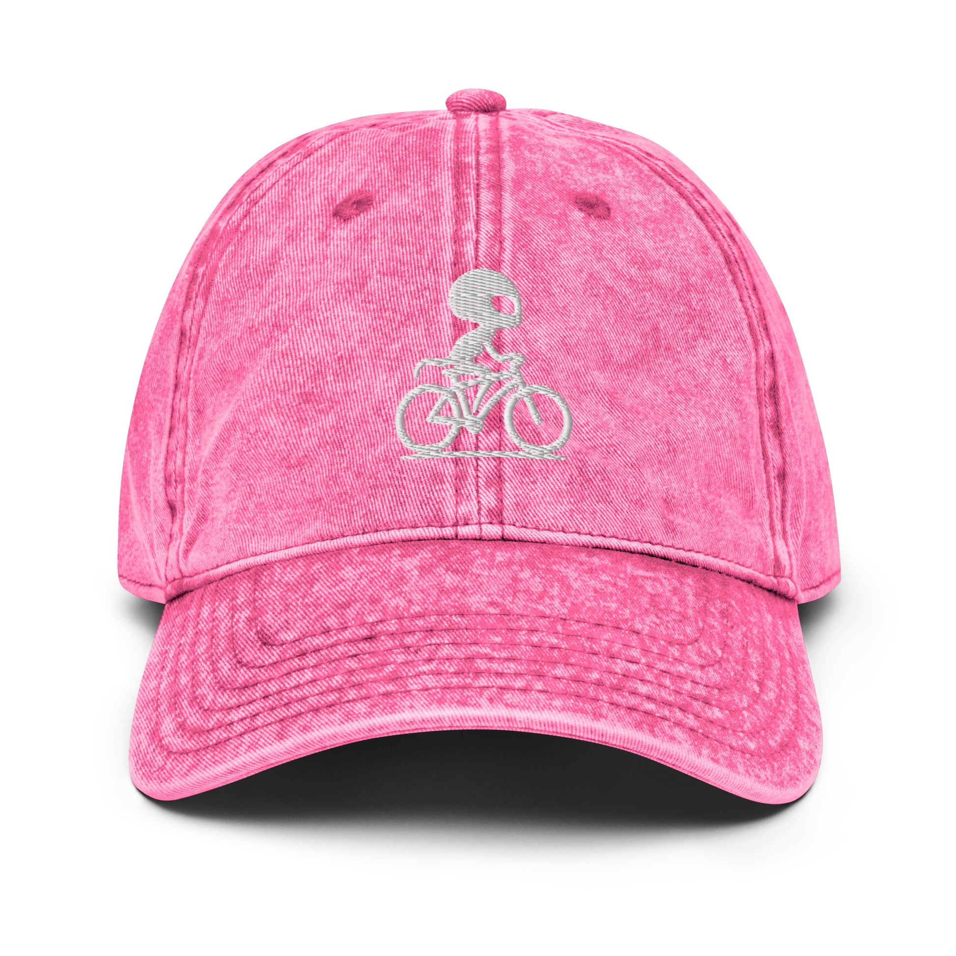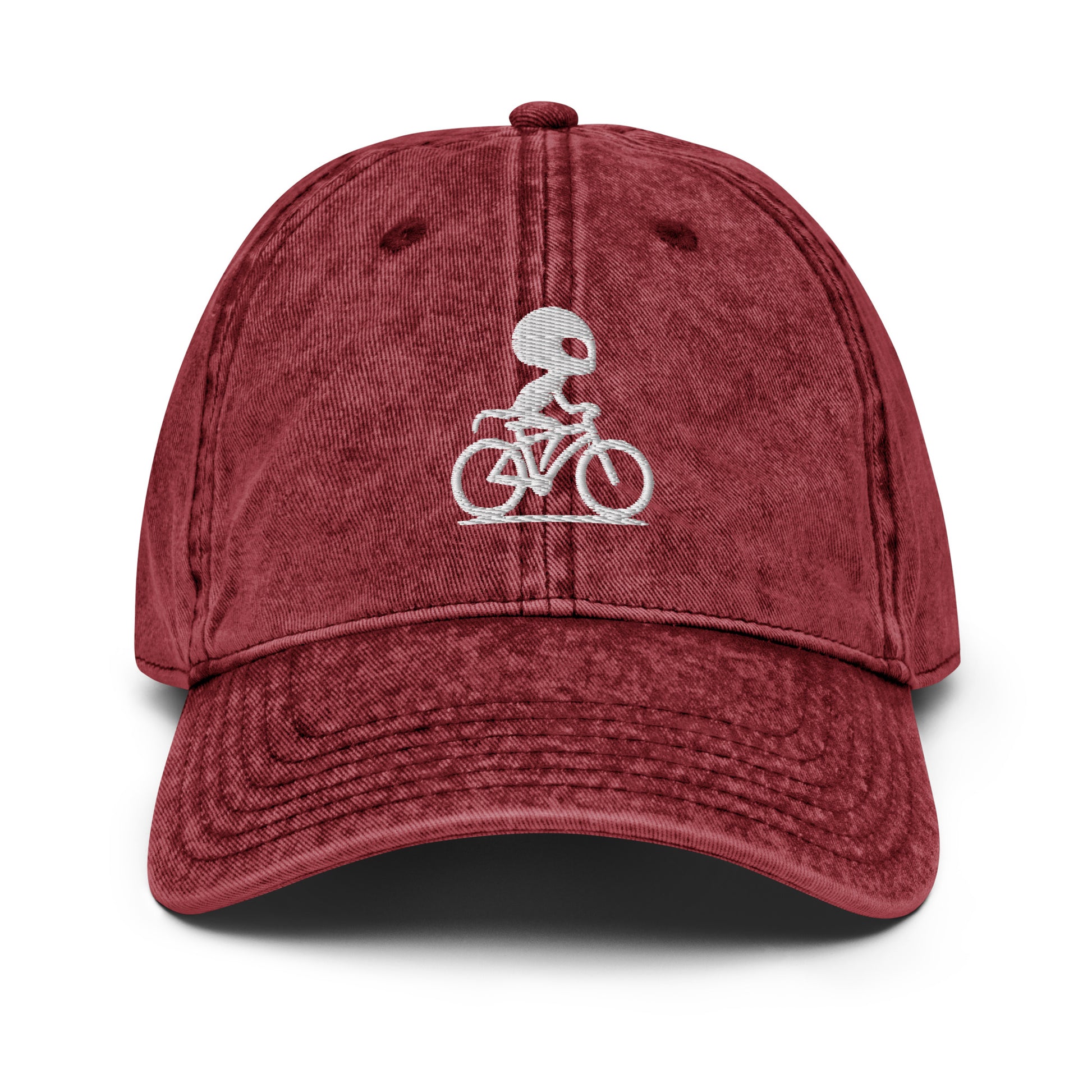Add a touch of timeless style to your wardrobe with our vintage cotton twill hat. Perfect for cycling enthusiasts, this cap features a cool embroidered Alien riding a bike. The washed-out vintage feel and high-quality craftsmanship make this hat a truly special accessory.