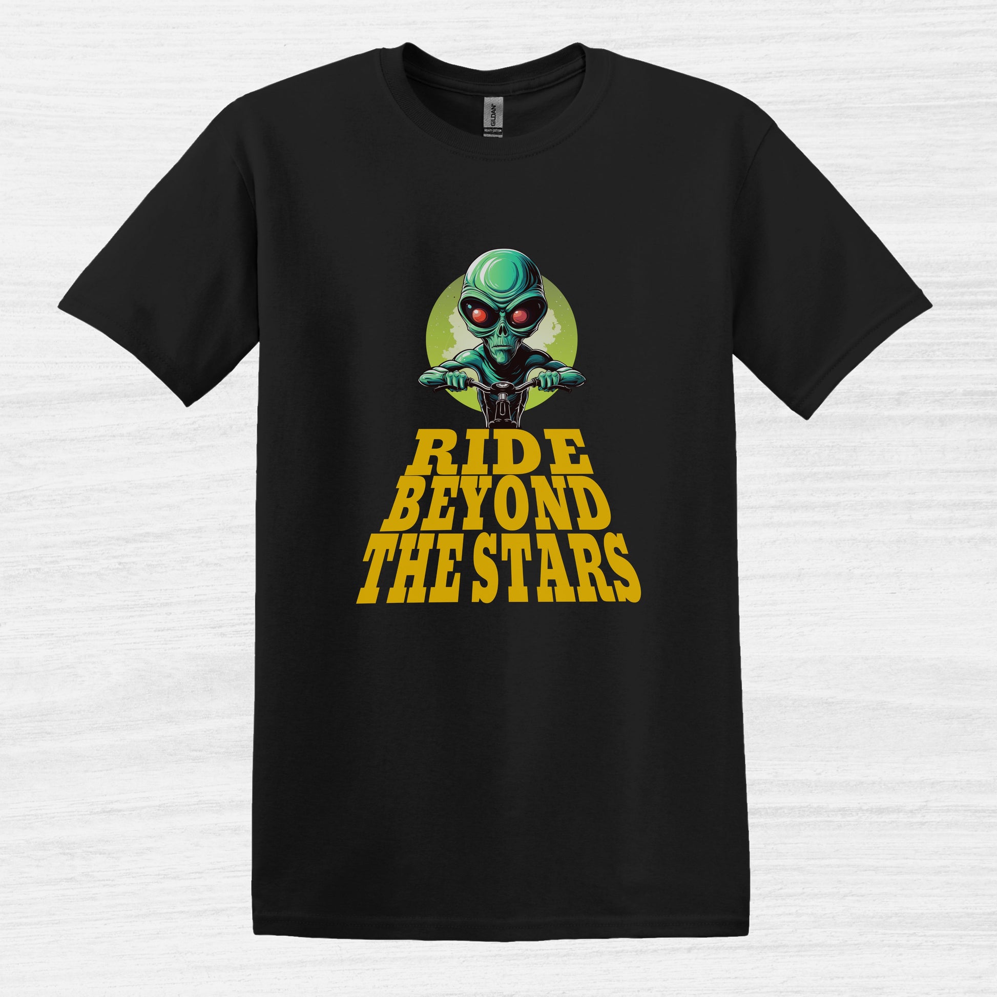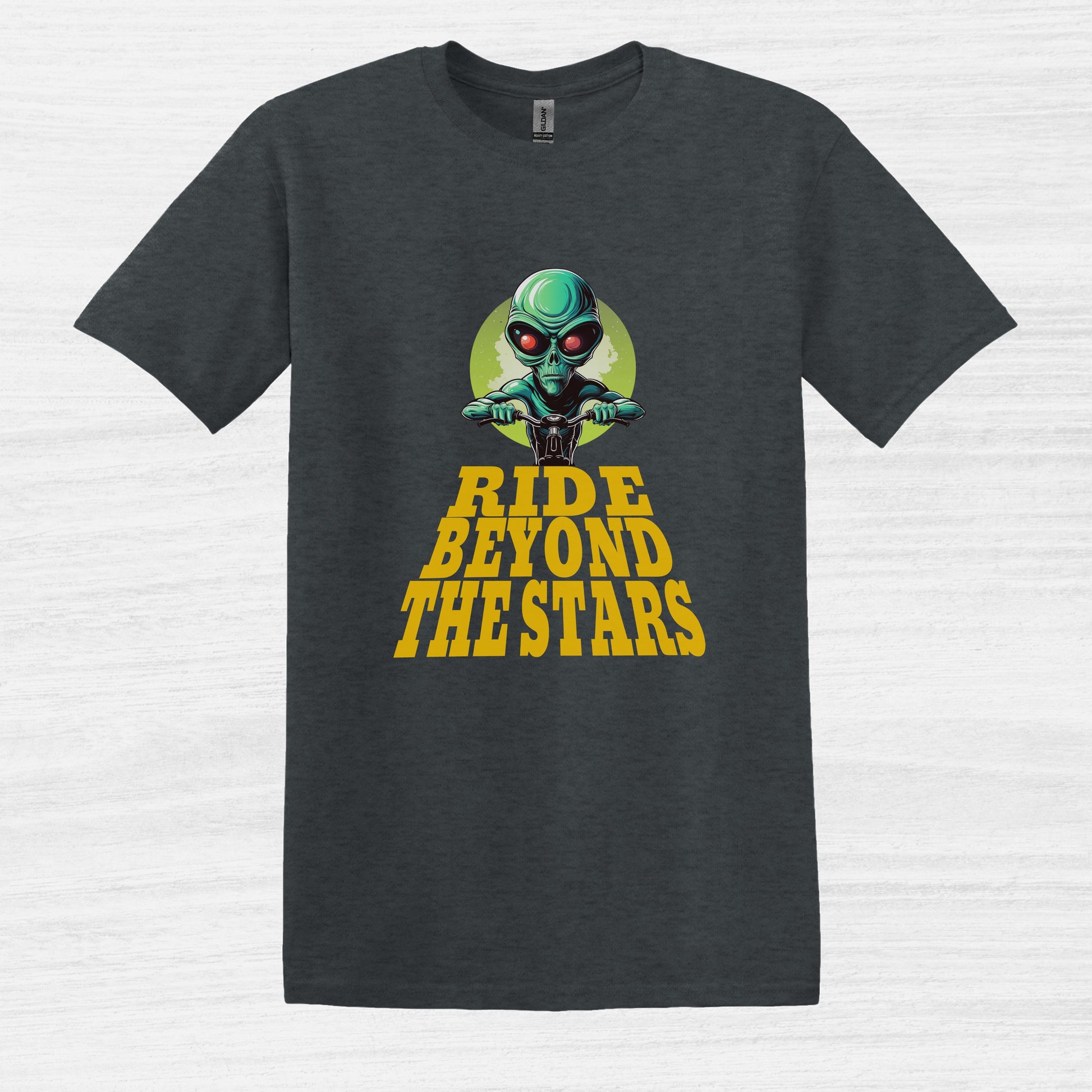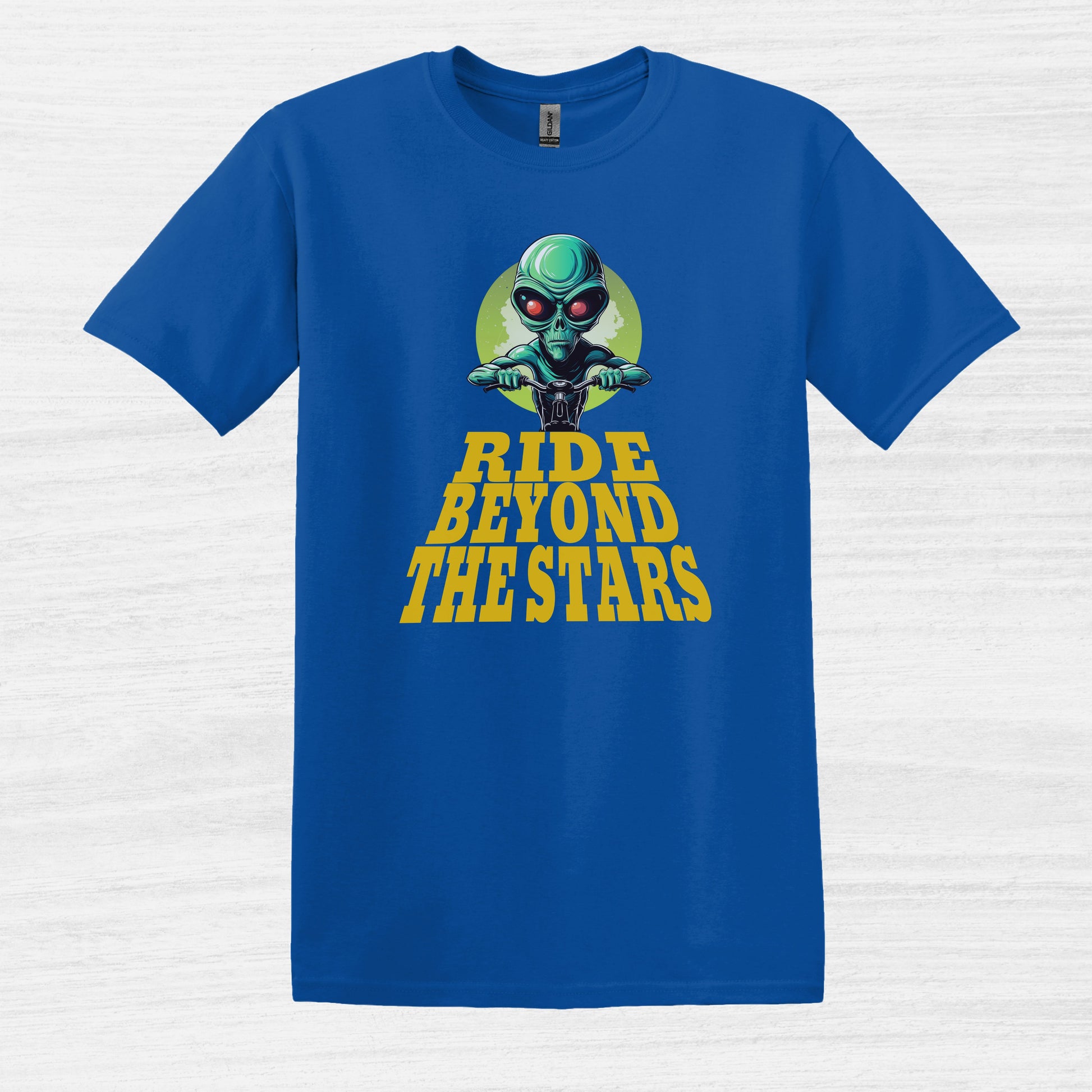 Hit the road with style in this cosmic adventure tee! Perfect for Mountain bike lovers and sci-fi fans alike, our "Ride Beyond The Stars" T-shirt features an eye-catching graphic of an alien speeding on his space bike. Made for those who dream of galaxies far away while cruising down the highway, this shirt is a unique blend of extraterrestrial and terrestrial cool. Whether you're looking for a Father's Day surprise, a special birthday present or just want to make your friend smile on a regular day, this shirt has you covered. So, grab one for yourself or gift it to the biker in your life who loves dad jokes, mom hugs, and friendship that's as vast as the universe!