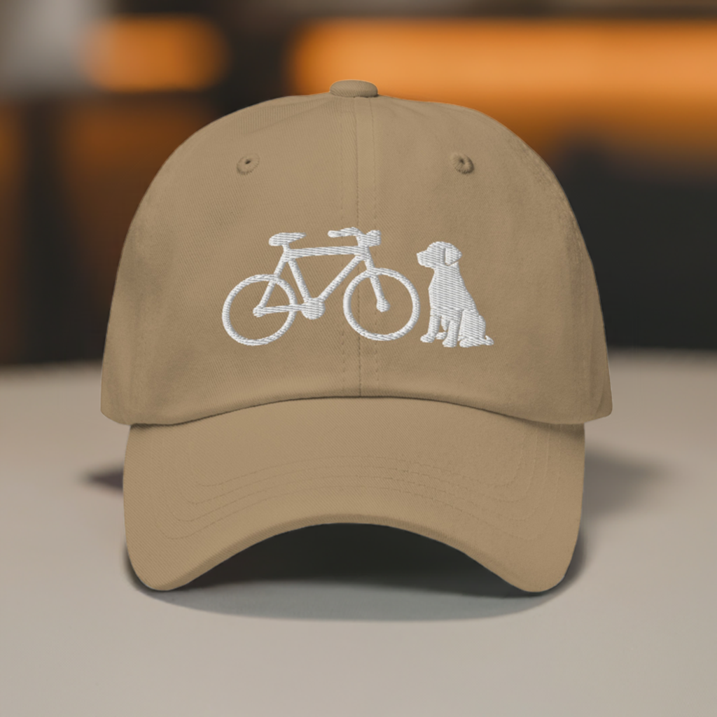 Ride in style and make a difference with our Bike and Dog Embroidered Hat 🚴♂️🌿! Made from 100% chino cotton twill, this hat ensures comfort and durability for all your outdoor adventures. This cap features a sleek, unstructured design with a bicycle-themed embroidery that speaks to your cycling passion. With an adjustable strap for the perfect fit and breathable embroidered eyelets, it's designed for comfort on any adventure.