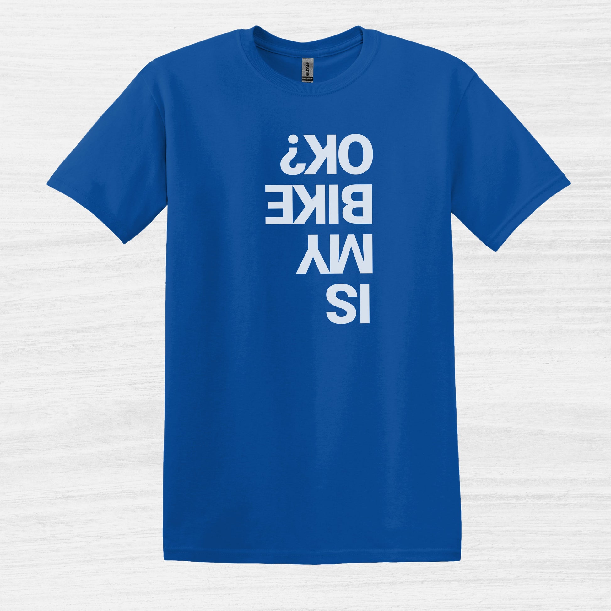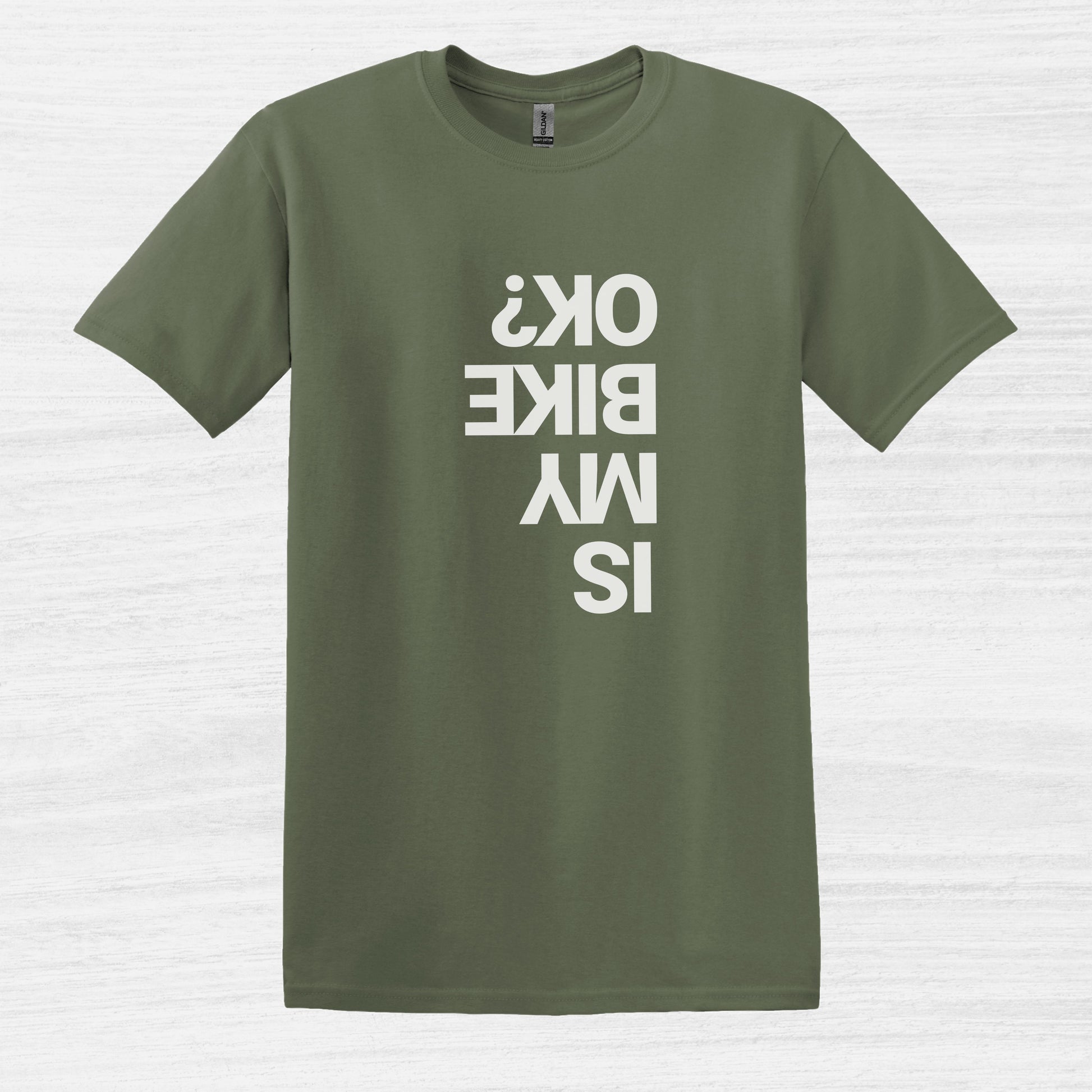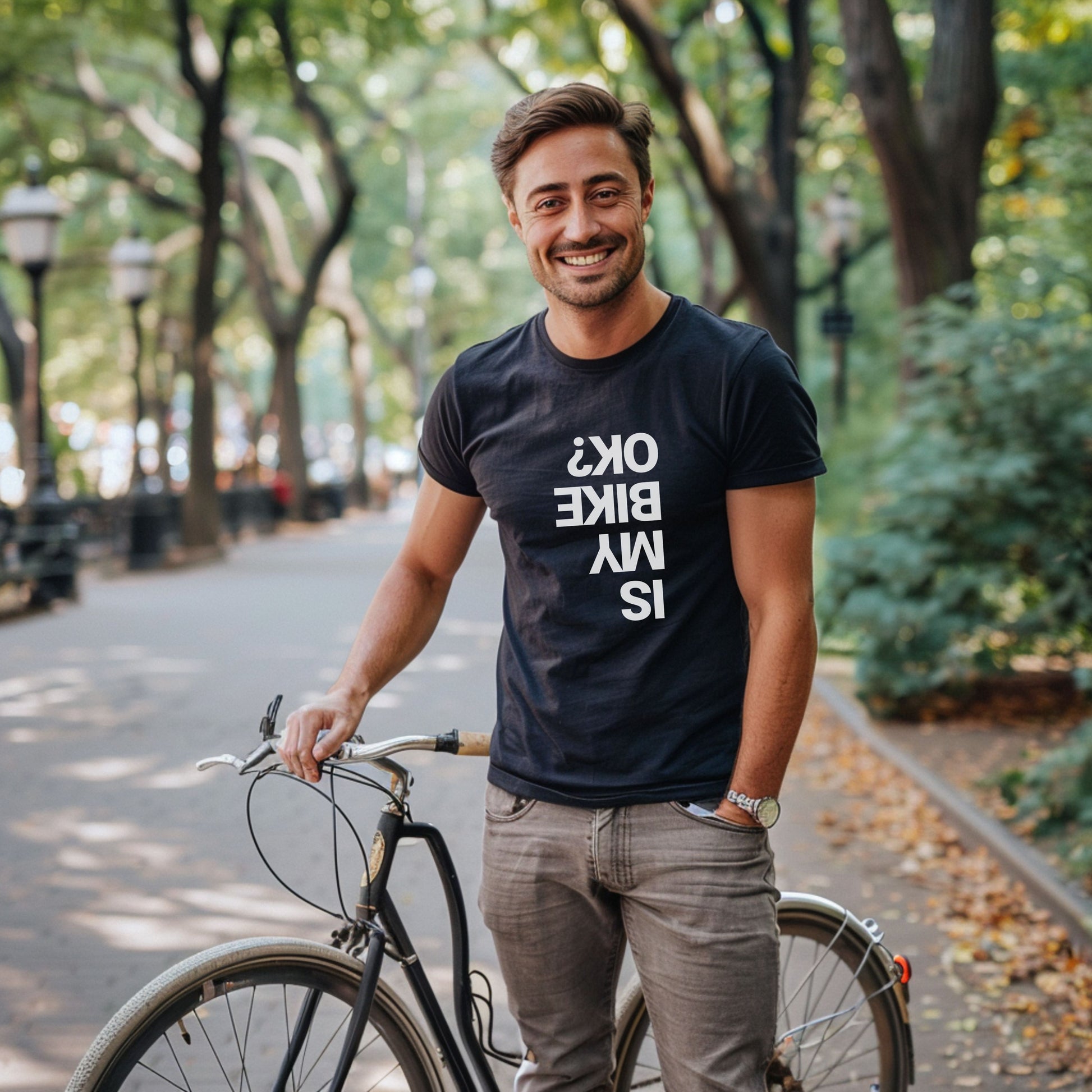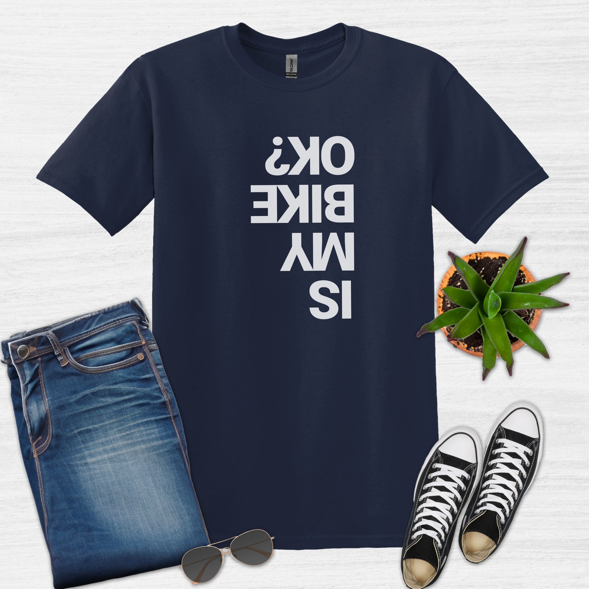 Stand out in the crowd with this trendy and fun Bicycle T-shirt featuring a bold, upside-down text design that reads "Is my Bike OK?." This stylish tee is perfect for those who have a unique sense of fashion and aren't afraid to show it. Made with high-quality cotton, this shirt offers both comfort and durability. Whether you're going out with friends or just chilling at home, this versatile top is the perfect go-to choice for any casual occasion. Celebrate birthdays, Christmas, Father's Day, Mother's Day, or any milestone with this unique cyclist tee. Grab one for yourself or as a gift, and let the good times roll!