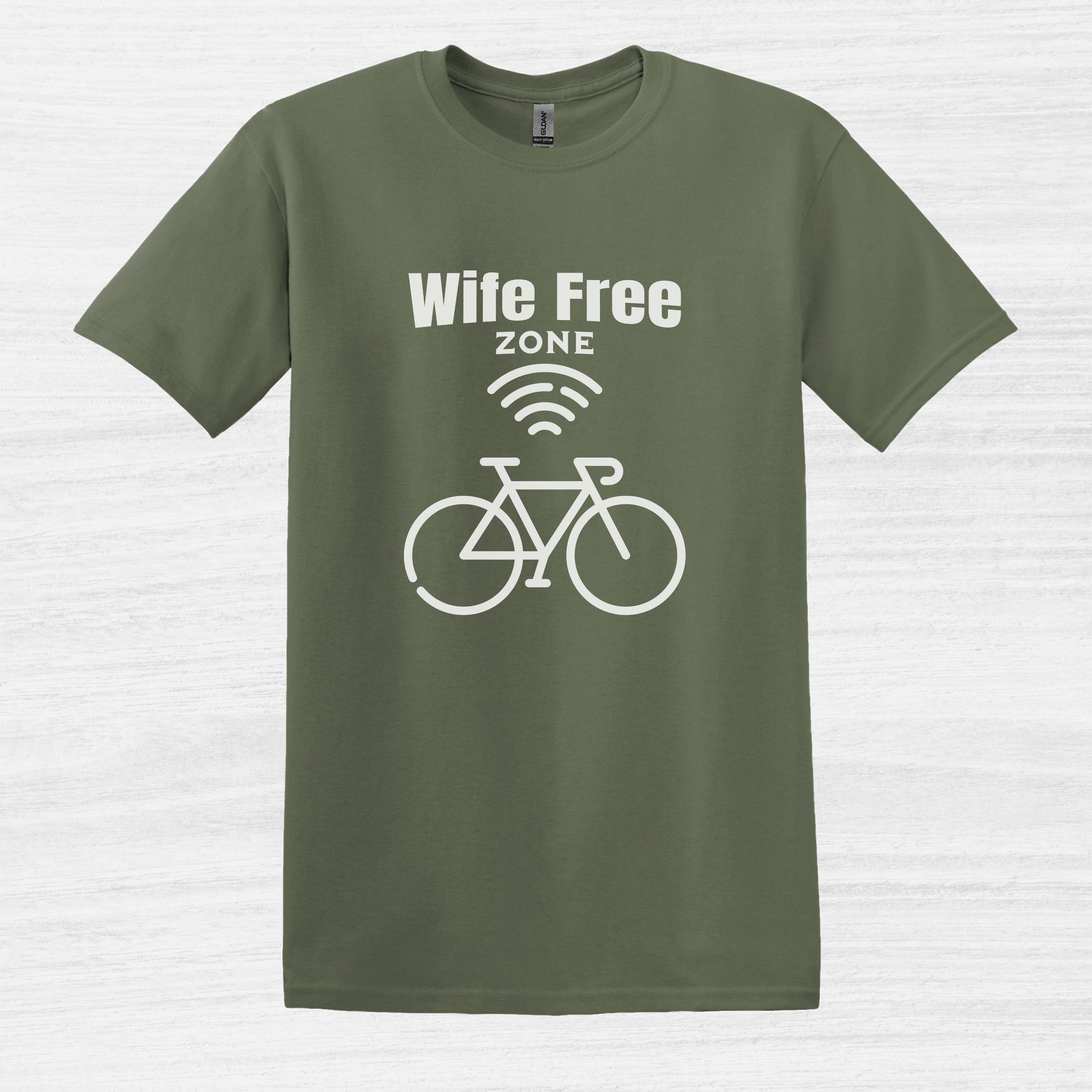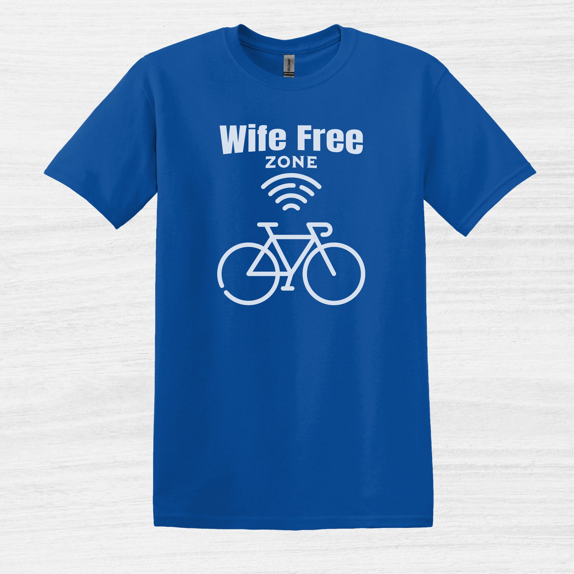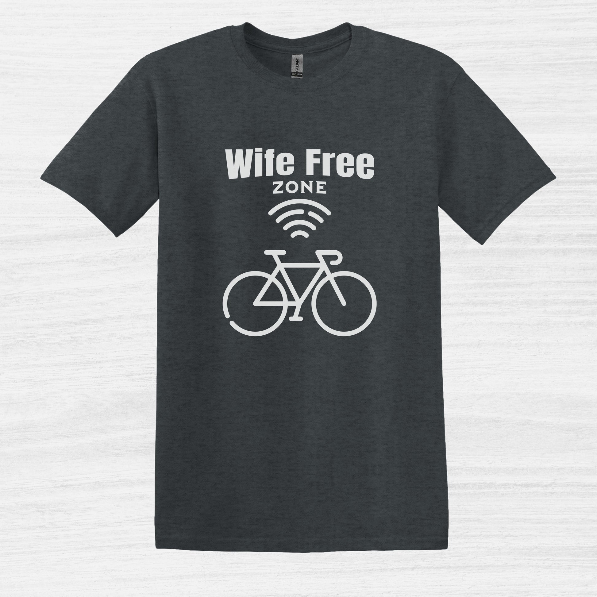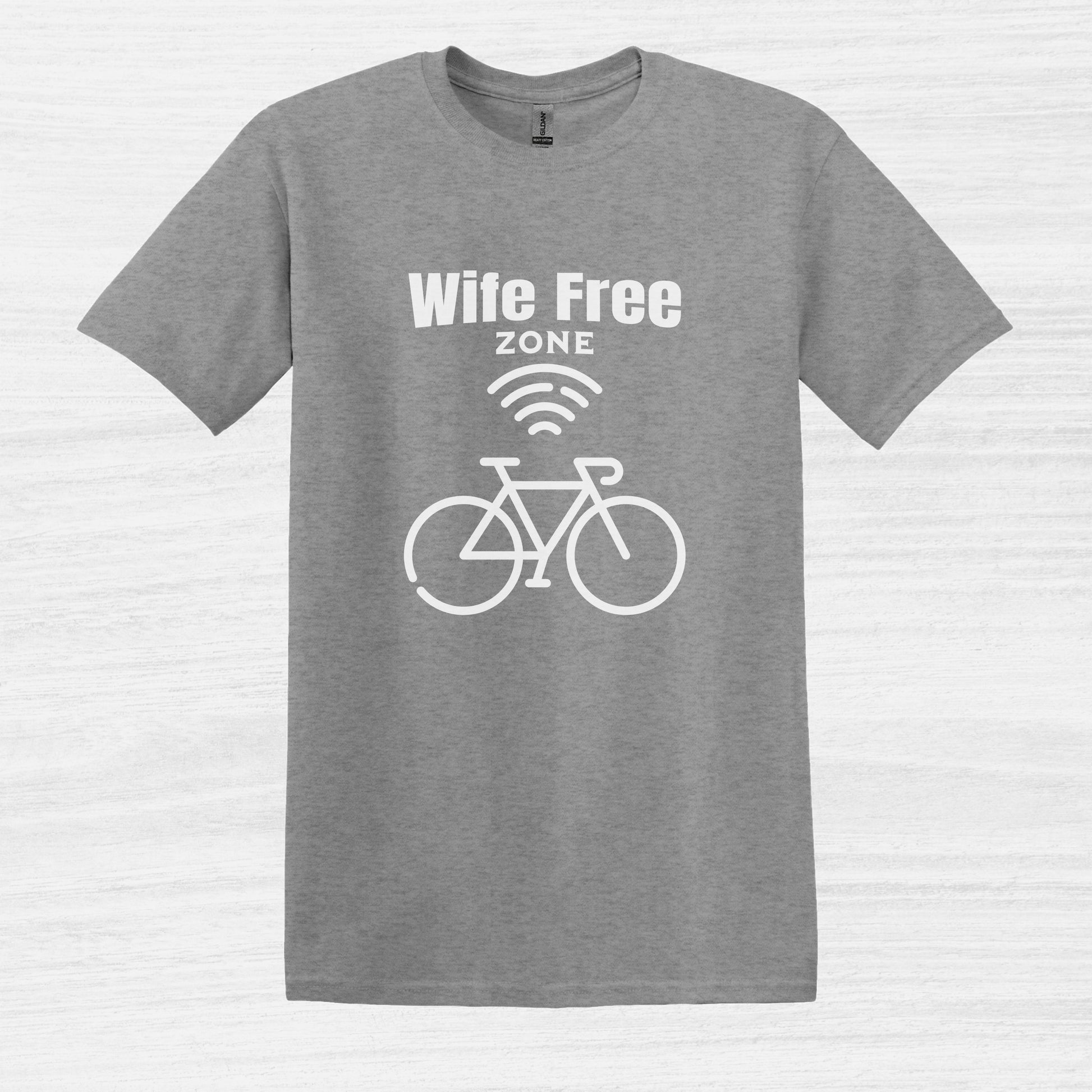 Get ready to hit the road with our humorous Wife Free Zone Bike t-shirt, perfect for the cycling enthusiast in your life! Crafted from soft, durable material, this shirt is a comfortable choice for any casual outing or bike ride. Featuring a bold graphic of a bicycle with a playful "Wife Free Zone" text and Wi-Fi symbol, it's sure to bring a smile and a laugh to friends and fellow cyclists. Whether you're looking for a fun gift for your husband, dad, or any bike-loving friend, this tee is a great way to show your appreciation for their hobby. Not just a gift, but a statement piece that's both stylish and witty!