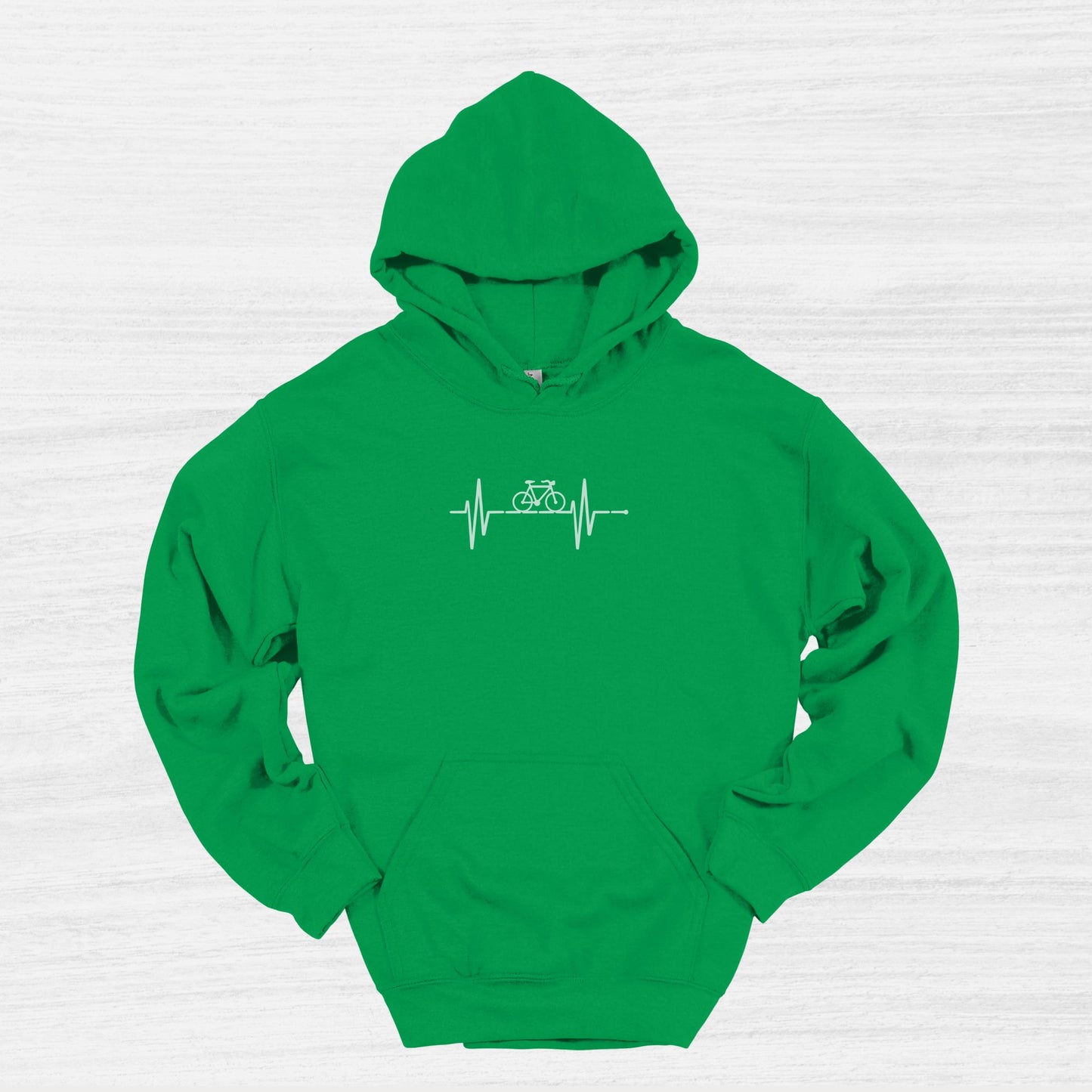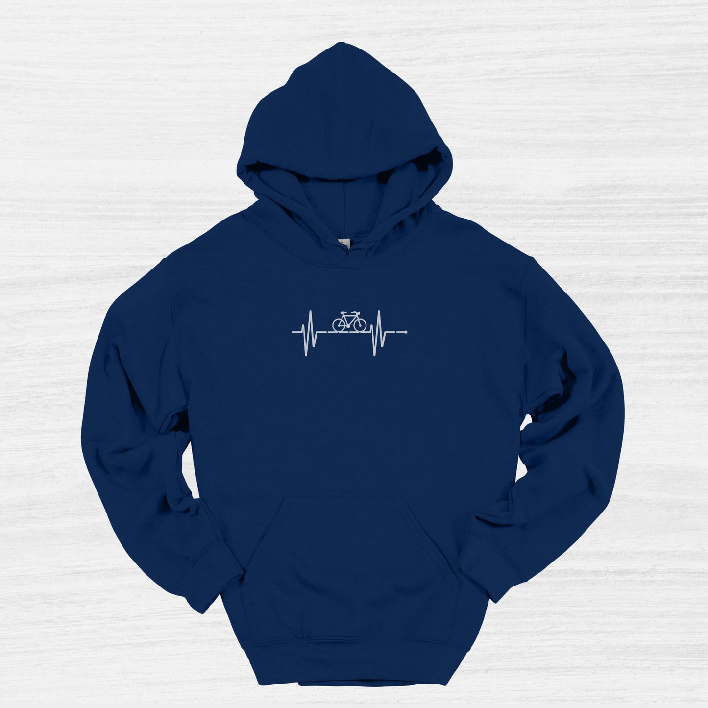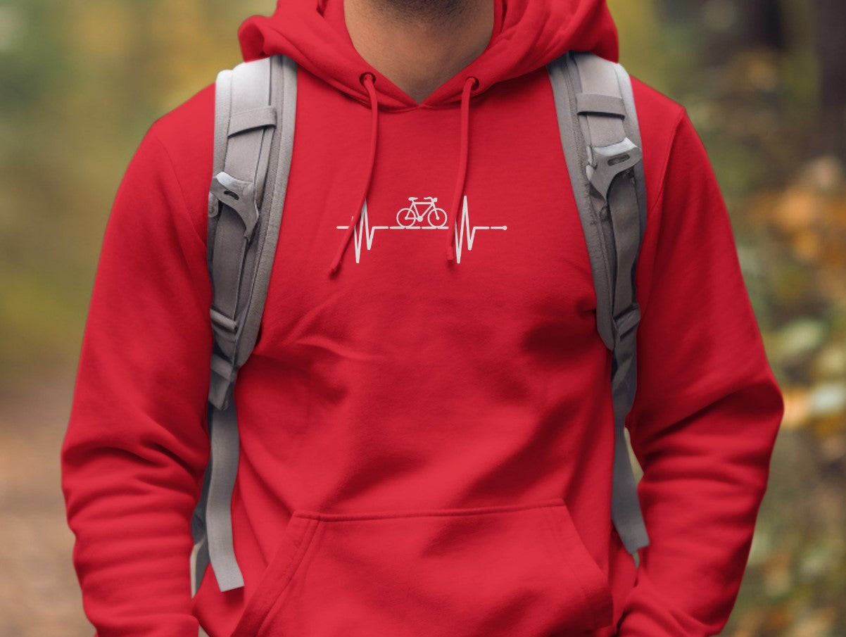 Embrace your passion for pedaling with this cozy Cycling Heartbeat Hoodie, perfect for both men and women. Designed with a unique EKG line that cleverly integrates a bicycle silhouette, showcasing your love for cycling in a subtle yet stylish way. Crafted for comfort, this hoodie promises a true-to-size fit, ensuring you feel as good as you look. Whether you're out for a casual ride or just lounging at home, this pullover is the ideal companion. A splendid gift idea for bike enthusiasts, it's sure to become a cherished addition to any cyclist's wardrobe.