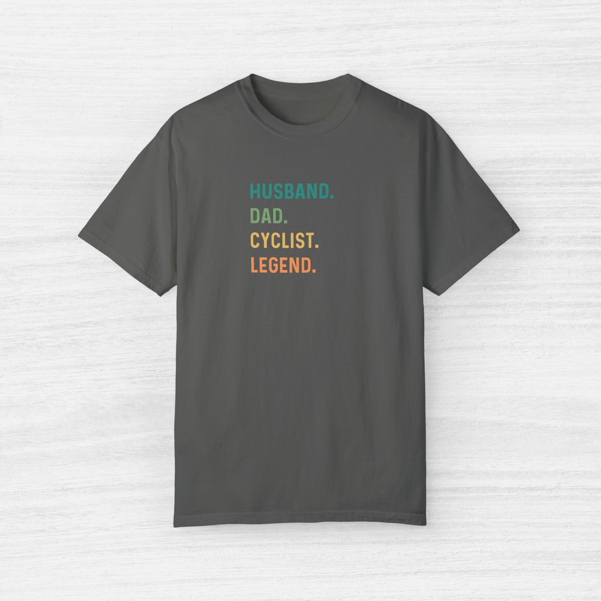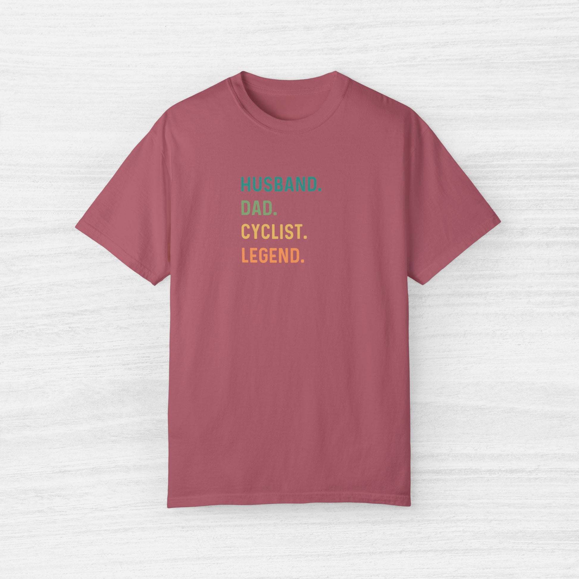 Celebrate the amazing cycling dad in your life with this vibrant and stylish t-shirt that showcases the words "Husband. Dad. Cyclist. Legend." A perfect mix of pride and humor, this tee is ideal for fathers who love cycling. Made from high-quality materials, it ensures comfort and durability. Whether it's for Father's Day, a birthday, Christmas, or any special milestone, this t-shirt is a thoughtful and practical gift that any cycling enthusiast will appreciate and wear proudly.