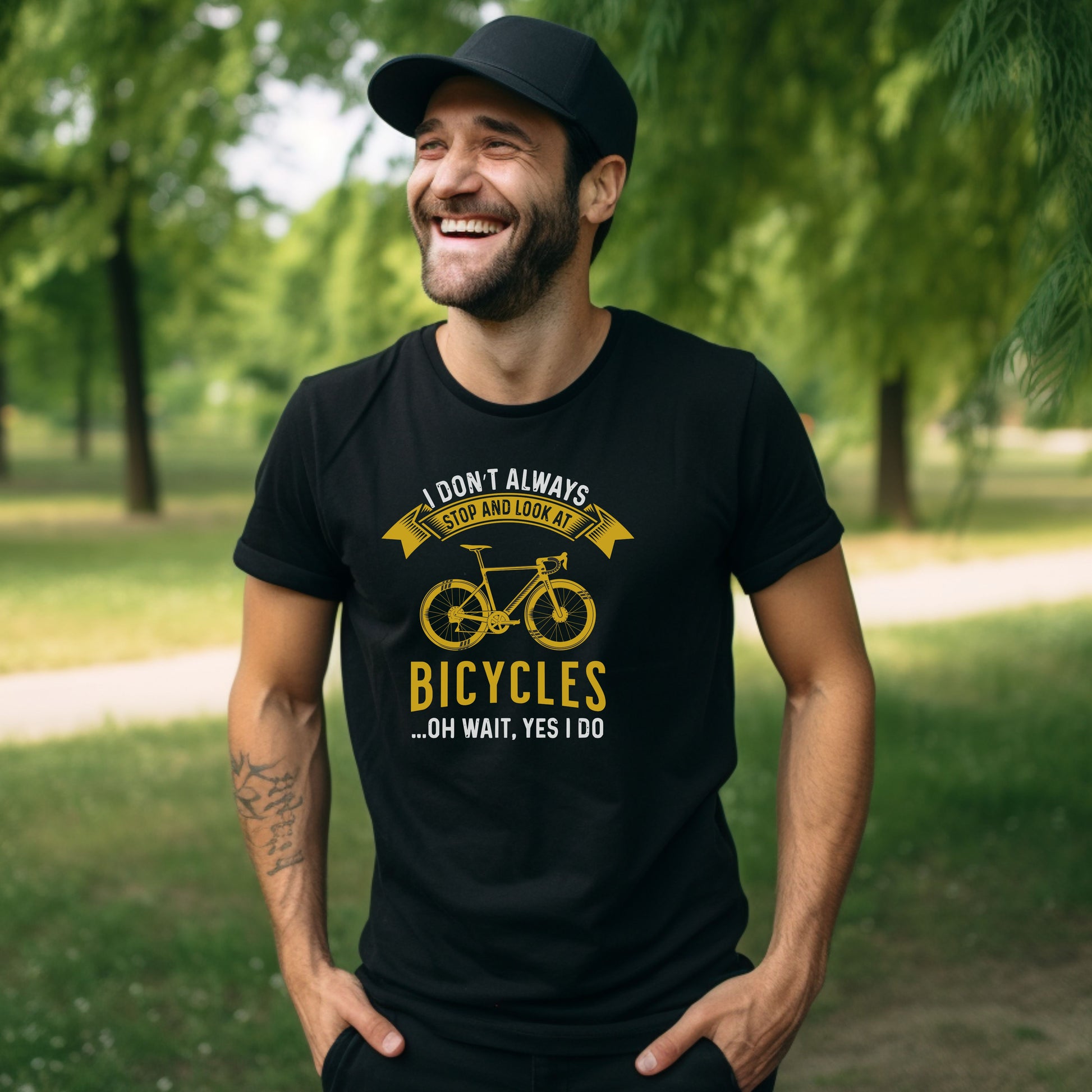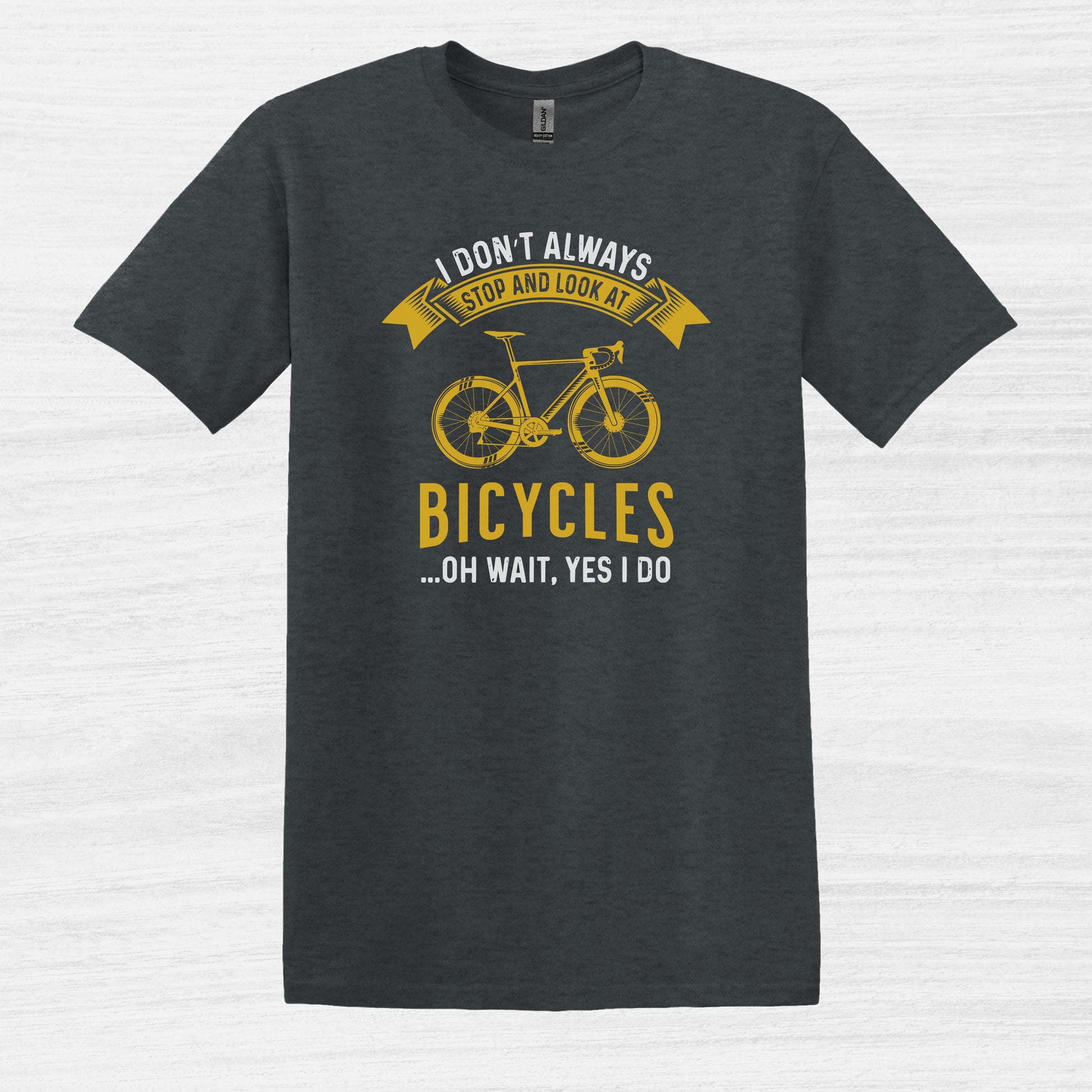 Ready to rock a cycle-chic look? Our I don't always stop and look at Bicycles - Bicycle unisex crewneck T-Shirt is just what you need for a blend of comfort and flair.