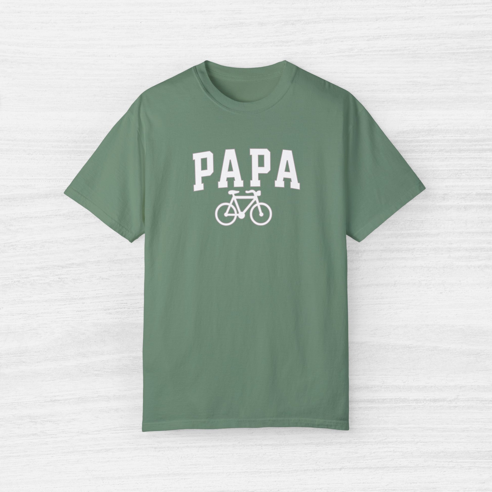 This shirt is perfect for dads who love cycling. Featuring the word "PAPA" with a bicycle design, it's an ideal gift for cycling dads. Whether you are a cycling dad or know one, this shirt makes the perfect gift for any occasion, such as birthdays, Father's Day, Christmas, or to celebrate milestones. Available in a variety of colors and sizes. Get yours today and show your passion for cycling!