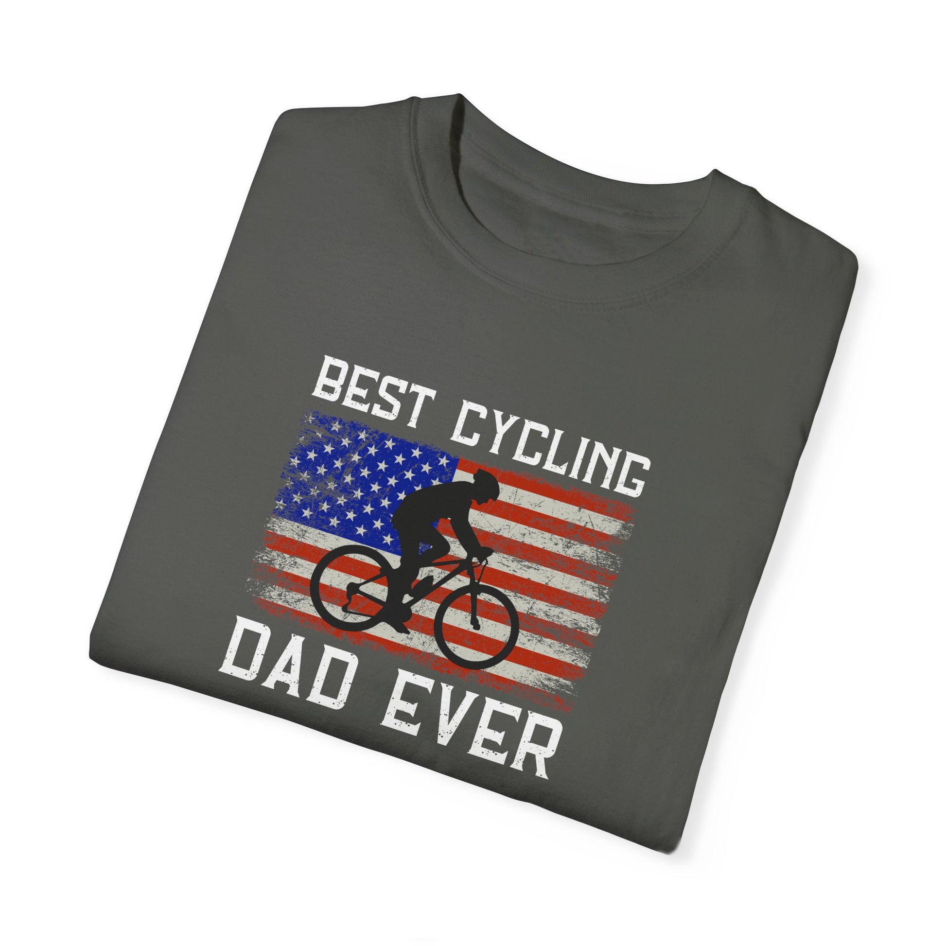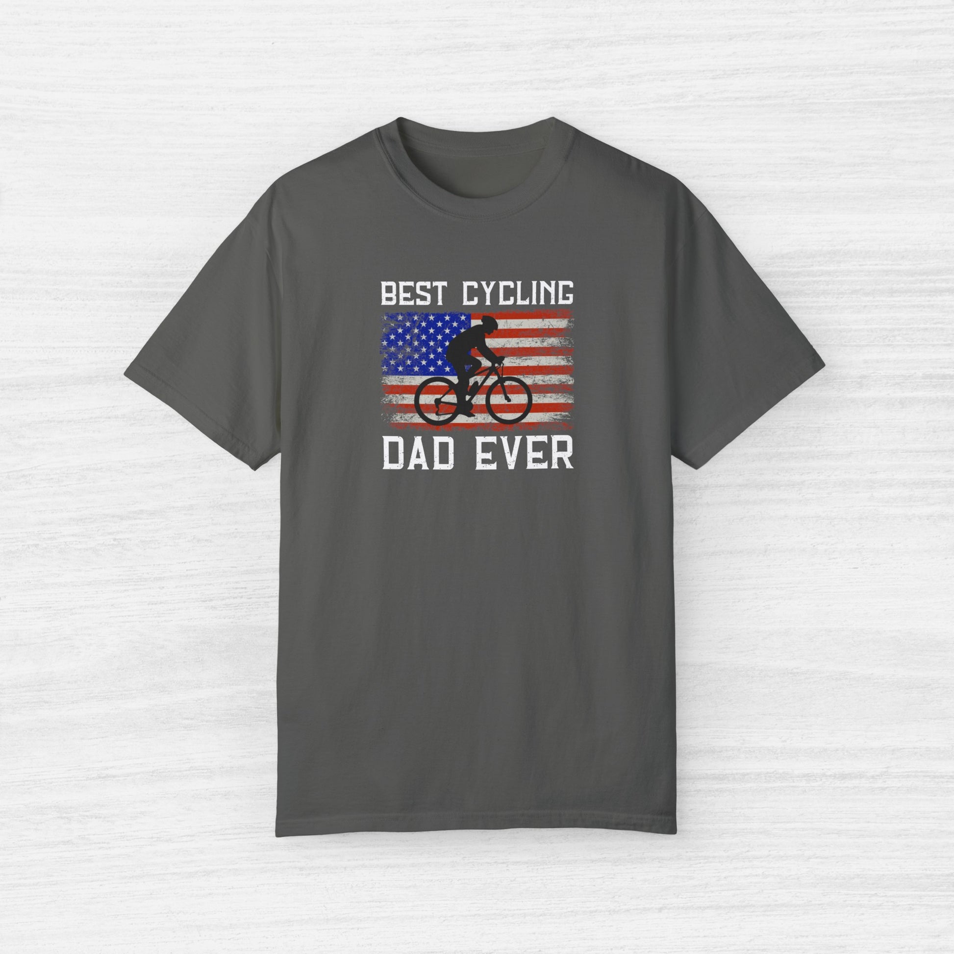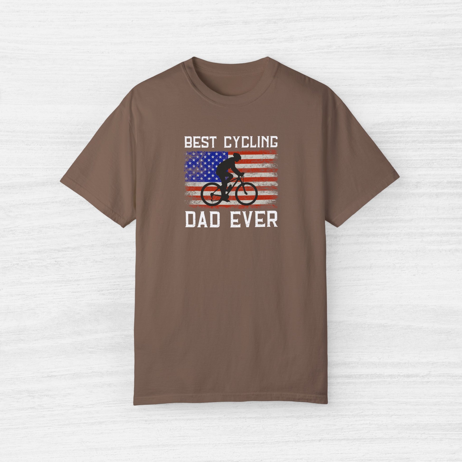 Show off your patriotic spirit and love for cycling with this unique t-shirt featuring a bike rider silhouette against an American flag background. This shirt is perfect for dads who love cycling and the USA. Whether you are a cycling dad or know one, this shirt makes the perfect gift for any occasion, such as birthdays, Father's Day, Christmas, or to celebrate milestones. Comfortable and stylish, it comes in a variety of colors and sizes. Don't miss out on the chance to give the perfect gift – get yours today!