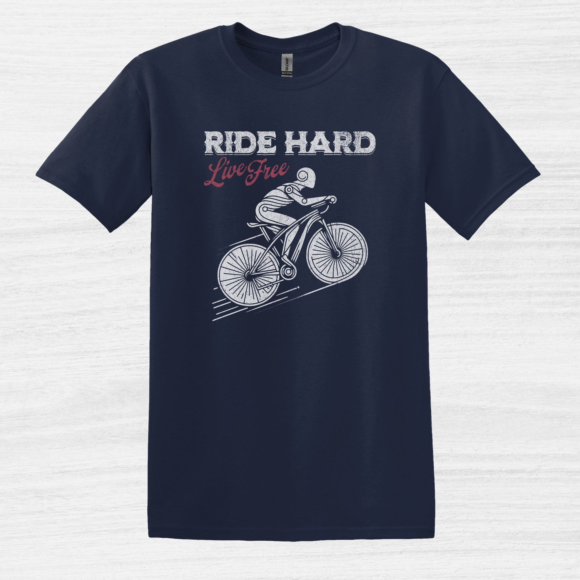 Embrace the spirit of freedom with our Ride Hard Live Free unisex Bicycle T-shirt, perfect for those who love to cycle and live life on two wheels. Made for comfort and style, this cycling-inspired tee is an excellent gift for your cycling dad, husband, son, or friend. Whether it's for a birthday, Christmas, Father's Day, or any special occasion, this T-shirt is sure to be a hit amongst bicycle enthusiasts. Grab one for yourself or as a thoughtful gift and let the world know you ride hard and live free!